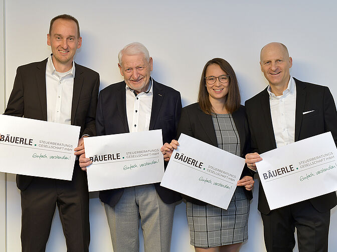Zum 01.01.2022 wurde die Kanzlei an die neu gegründete BÄUERLE . Steuerberatungsgesellschaft mbH verkauft. Hier sind neben den bisherigen Gesellschaftern Erich Bäuerle und Helmut Bäuerle nun auch die beiden erfahrenen Steuerberater-innen Benedikt Gmeinder und Mareike Künzler als Gesellschaftergeschäftsführer mit an Bord. Es ist nun gewährleistet, dass die Kanzlei weiter langfristig eigenständig bleiben kann und nicht von den am Markt tätigen Kanzleiaufkäufern geschluckt wird.